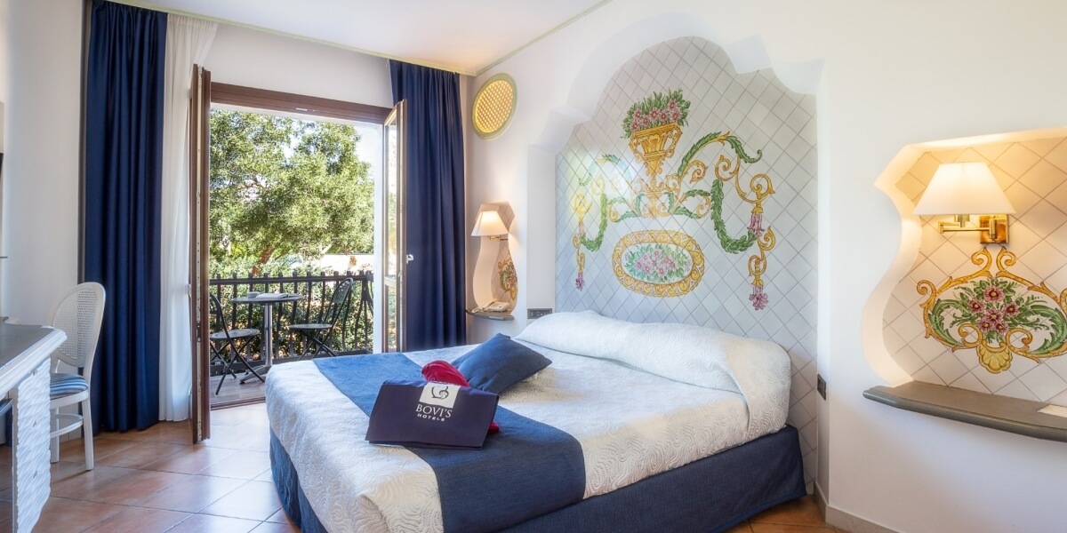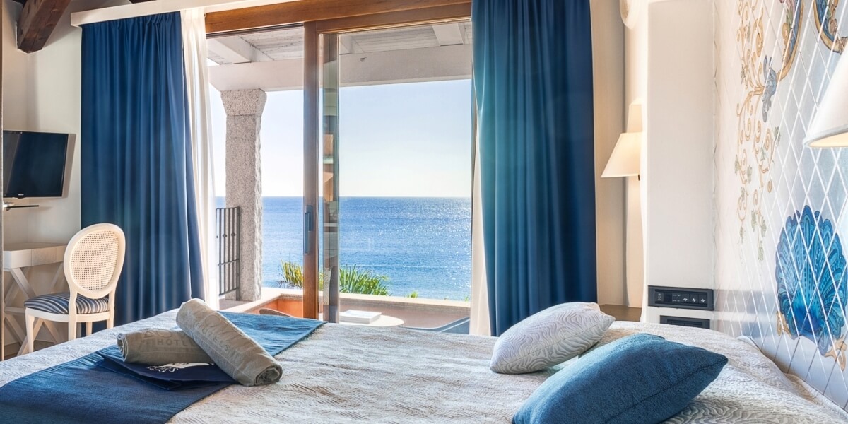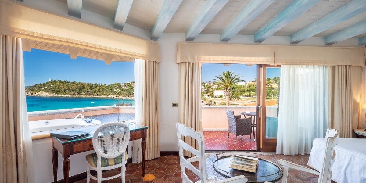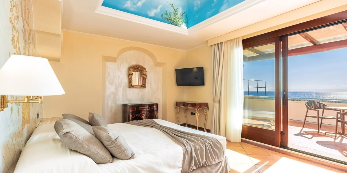 Camera esclusiva con ampio terrazzo, vista mare ed una vasca idromassaggio per due persone.